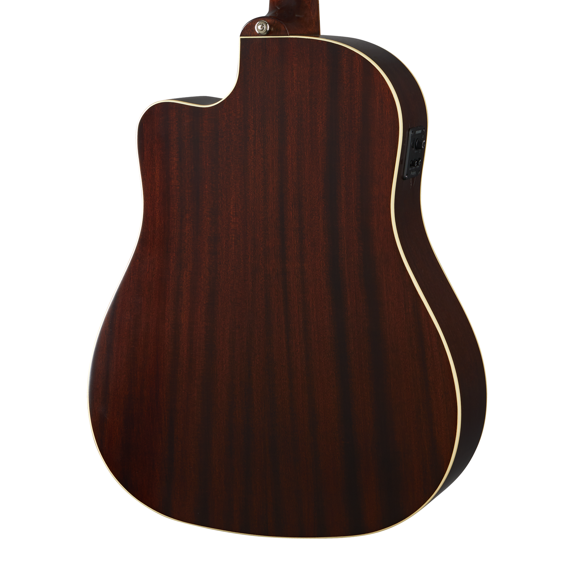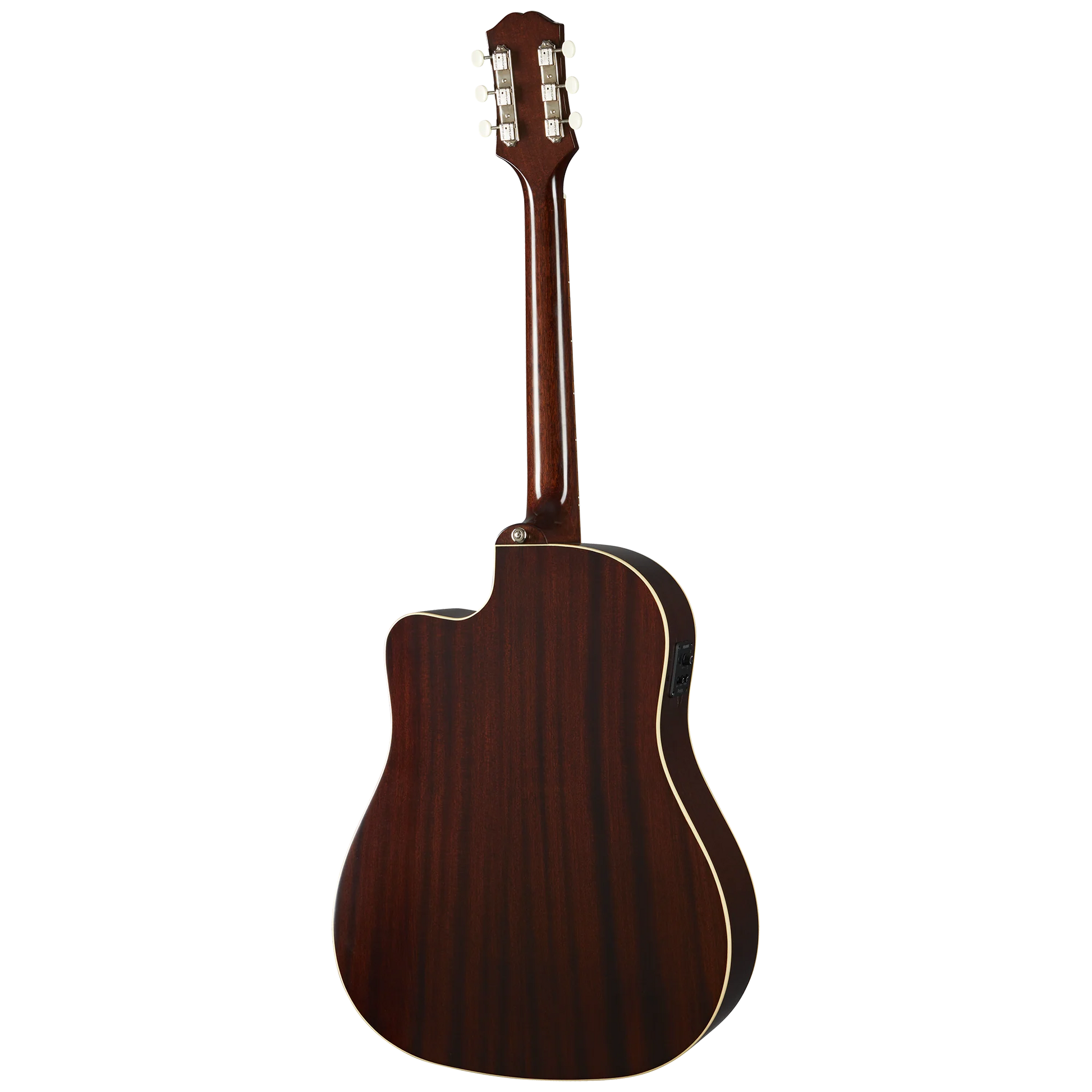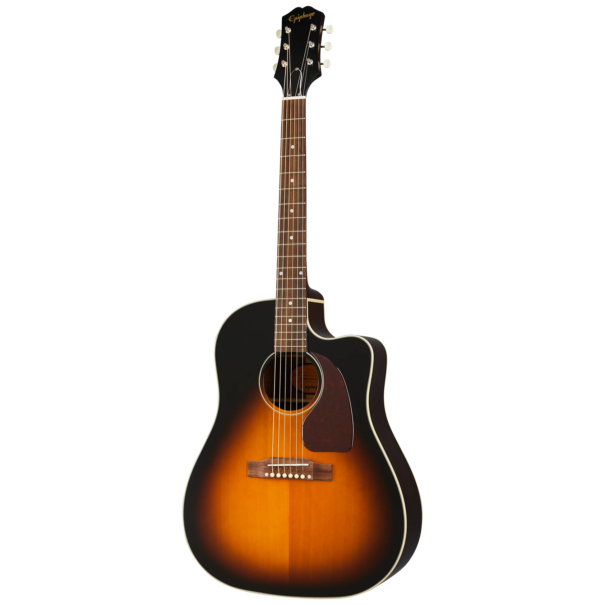 The legendary Gibson™ J-45™ has been a favorite of musicians ever since it was first introduced in 1942. Now Epiphone has released a new Inspired by Gibson™ J-45 Cutaway that gives players improved access to the upper frets while retaining all of the features that make the J-45 special to begin with, including the Sloped Shoulder body with a solid Sitka spruce top and solid mahogany back and sides, a comfortable rounded C neck profile, Fishman® Sonicore under-saddle pickup and Fishman Presys II preamp with volume and tone controls, and a beautiful Aged Vintage Sunburst finish. Optional hardshell or EpiLite™ case available separately.