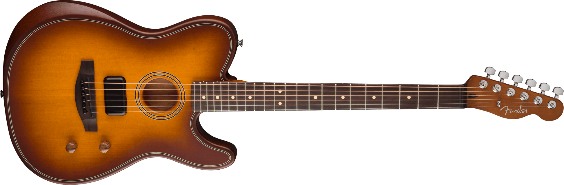 The dual personality of the Acoustasonic Standard Telecaster® equips players with a versatile spectrum of acoustic and electric tones in a single creative tool. With a braced solid Sitka spruce top, fully chambered body, inventive Fender and Fishman®-designed analog electronics with volume and blend control, and the familiar playing feel of a Fender icon, this Tele® truly sets the standard for the Acoustasonic experience.