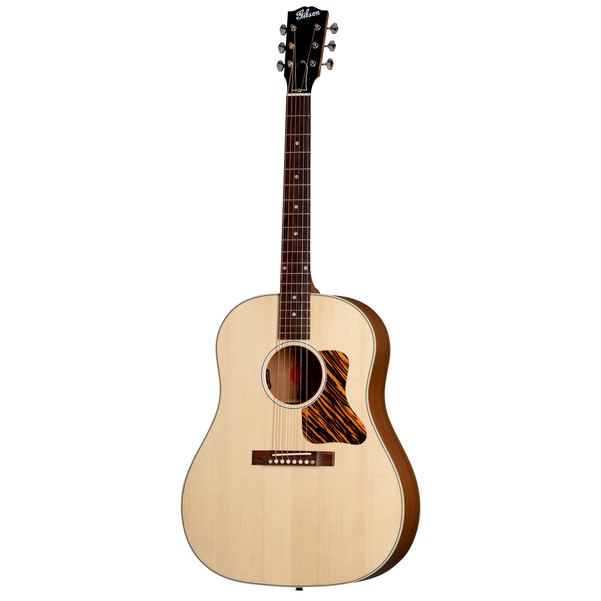 The J-35 evolved from the Jumbo in 1936, a time when the Great Depression was still wreaking havoc on Americans. Gibson developed the J-35 to be a pared-down model that still offered musicians a warm and balanced instrument. The J-35 30s Faded delivers every bit of the seasoned, vintage look, feel, and sound of our iconic J-35, with a satin nitrocellulose finish that only adds to its rich legacy and undeniable vintage vibe. Discerning flattop players will love the rich, full-bodied tone from this vintage-inspired, round-shoulder beauty, along with its superb playability and simple aesthetic charm. Includes a hardshell case.