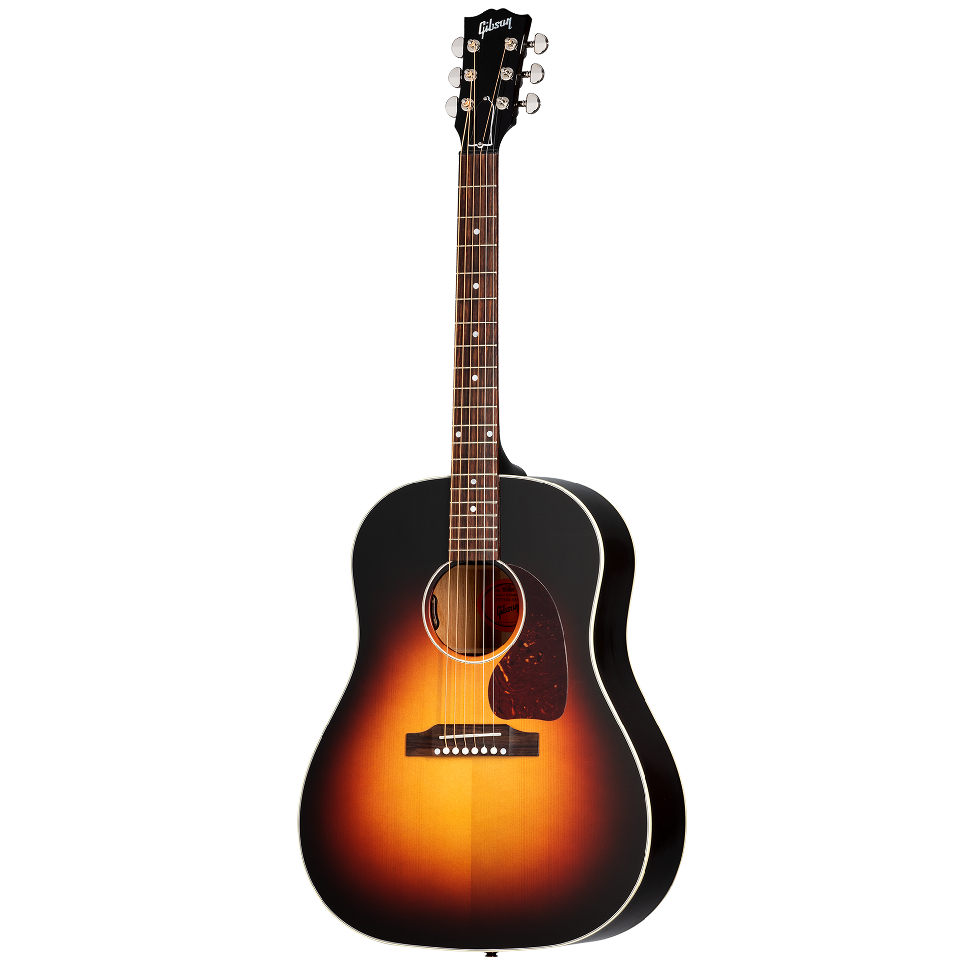 The J-45™ is Gibson's best-selling acoustic of all time. Nicknamed "The Workhorse" and first introduced in 1942, this iconic acoustic guitar has become the cornerstone of its round-shoulder, dreadnought line. World-renowned for its full, balanced expression, warm bass, and excellent projection, this J-45 has been refined to carry this legacy to new heights and is equipped with a red spruce top. The built-in L.R. Baggs™ VTC under-saddle pickup and preamp delivers the J-45's incredible dynamic range, warm mids, and tight punchy bass, both live, and in the studio. A Gibson hardshell case is included.