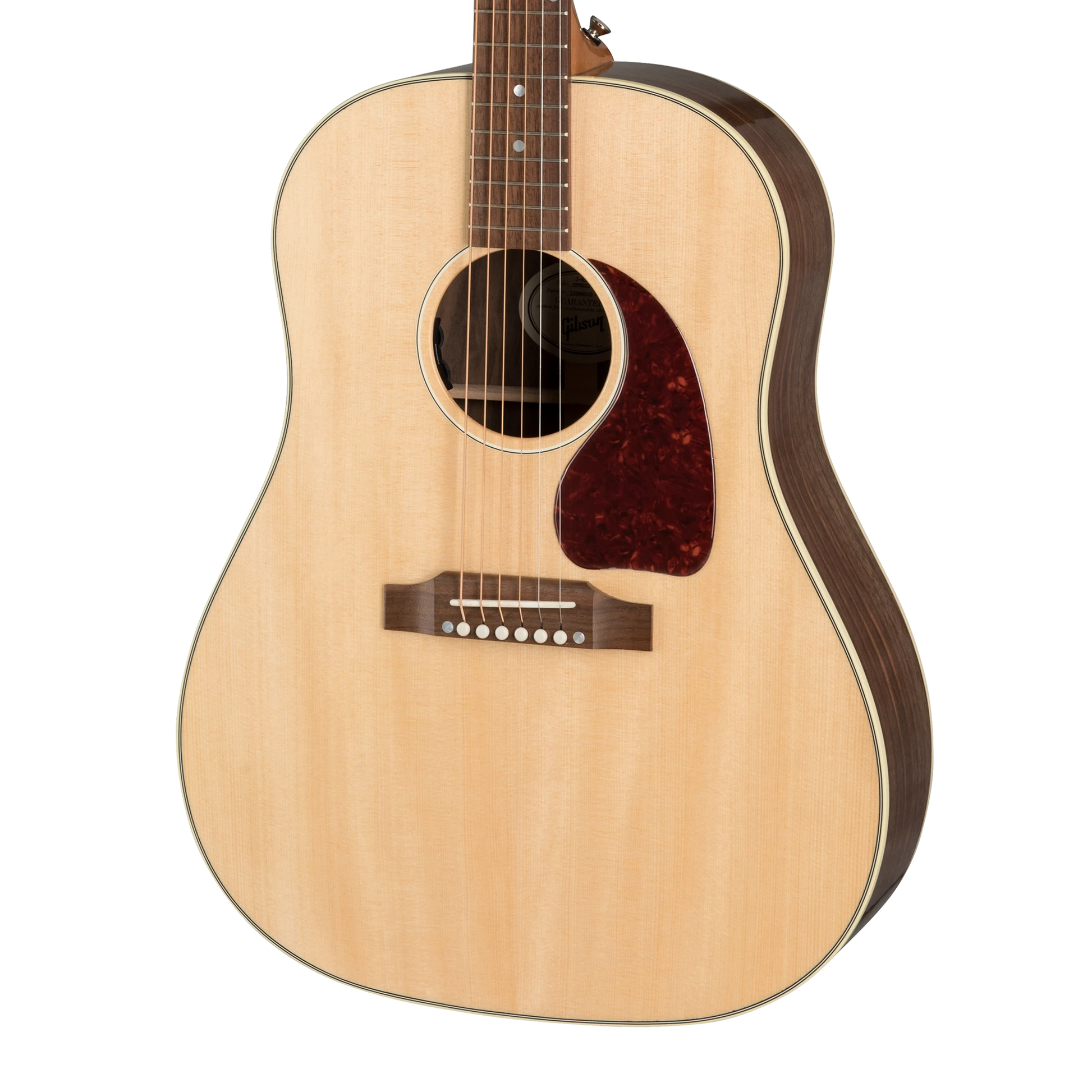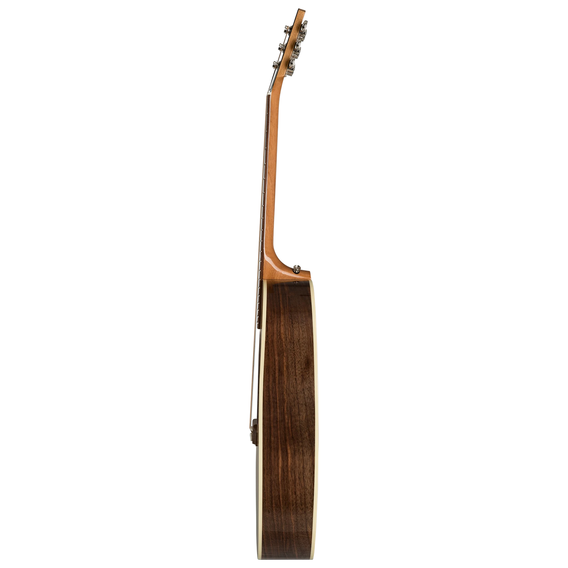 Turn heads with this unique J-45 Studio. Hand-built using walnut back and sides with a Sitka spruce top. The slim body depth allows for increased comfort underarm and the flatter fingerboard allows finer playability. Available in both Antique Natural and Walnut Burst finishes, as well as lefty! Finished with an active under-saddle piezo pickup for easy studio quality plug and play anywhere!