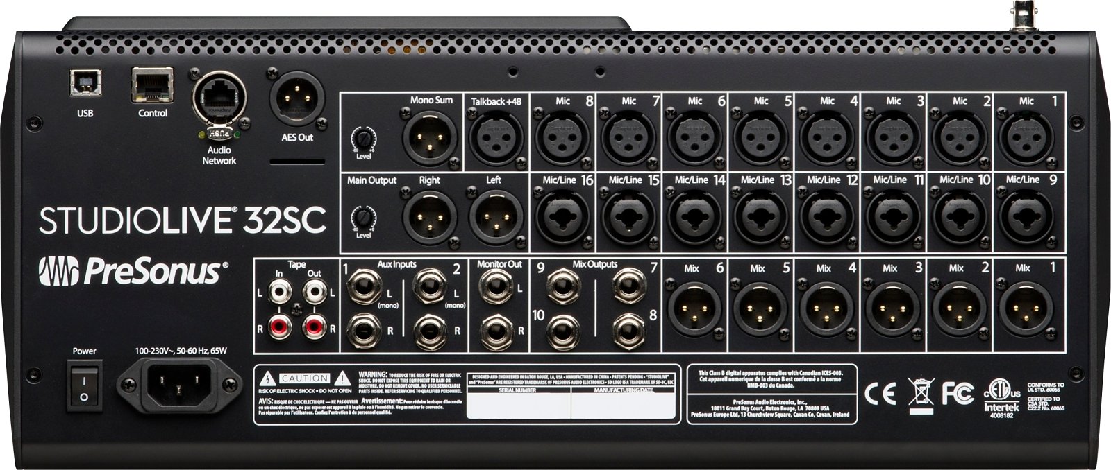 A 32-channel powerhouse packed inside a portable, rack-mountable frame, the StudioLive 32SC is a compact digital mixer that can compete with its bigger brothers, particularly when you consider its price. Thanks to AVB, it's easily expandable - readily networking with EarMix 16M personal monitor mixers for customized onstage mixes and PreSonus NSB-series stage boxes for additional inputs. The 32SC's 16 FlexMixes can be individually configured to function as aux buses, subgroups, or matrix mixes - your routing options will border on limitless. The Fat Channel processing section employs expandable, plug-in options with vintage-style EQ and classic compression options on every input channel and output bus.