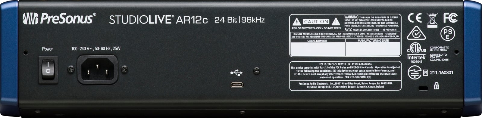 Don't let the classic analog mixer design fool you - the StudioLive® AR12c was built to record. Featuring a pristine analog front end with eight high-gain XMAX mic preamps and an 14x4, 24-bit, 96 kHz, USB-C™-compatible USB 2.0 audio interface, the StudioLive AR12c's hybrid design makes it simple to mix and record. Add in a musical 3-band analog EQ, mic/line boost for low-level sources including vintage synths, all-new digital effects with rich reverbs and lush delays, Bluetooth® connectivity, and a stereo SD recorder... and you have a mixing and recording powerhouse that fulfills the needs of both modern musicians and content creators.