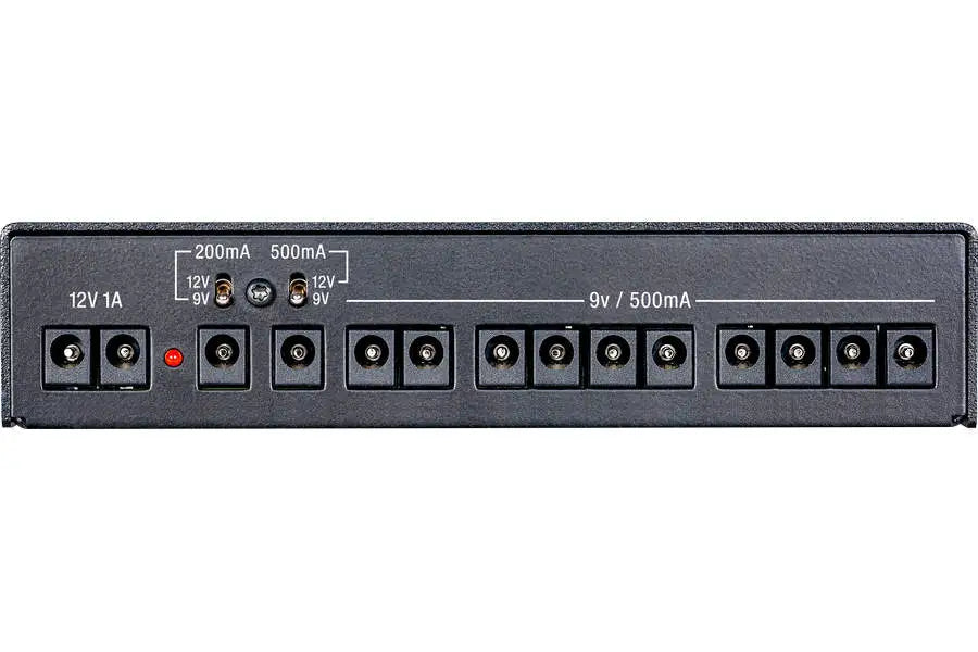 Equipped with twelve galvanically isolated DC outputs, Pedal Power 3 PLUS eliminates ground hum and unwanted interaction between pedals. Each output supplies 9V DC with two featuring a voltage selector switch for 12V DC operation. 18V and 24V pedals can be powered by combining outputs with an optional voltage doubler cable.