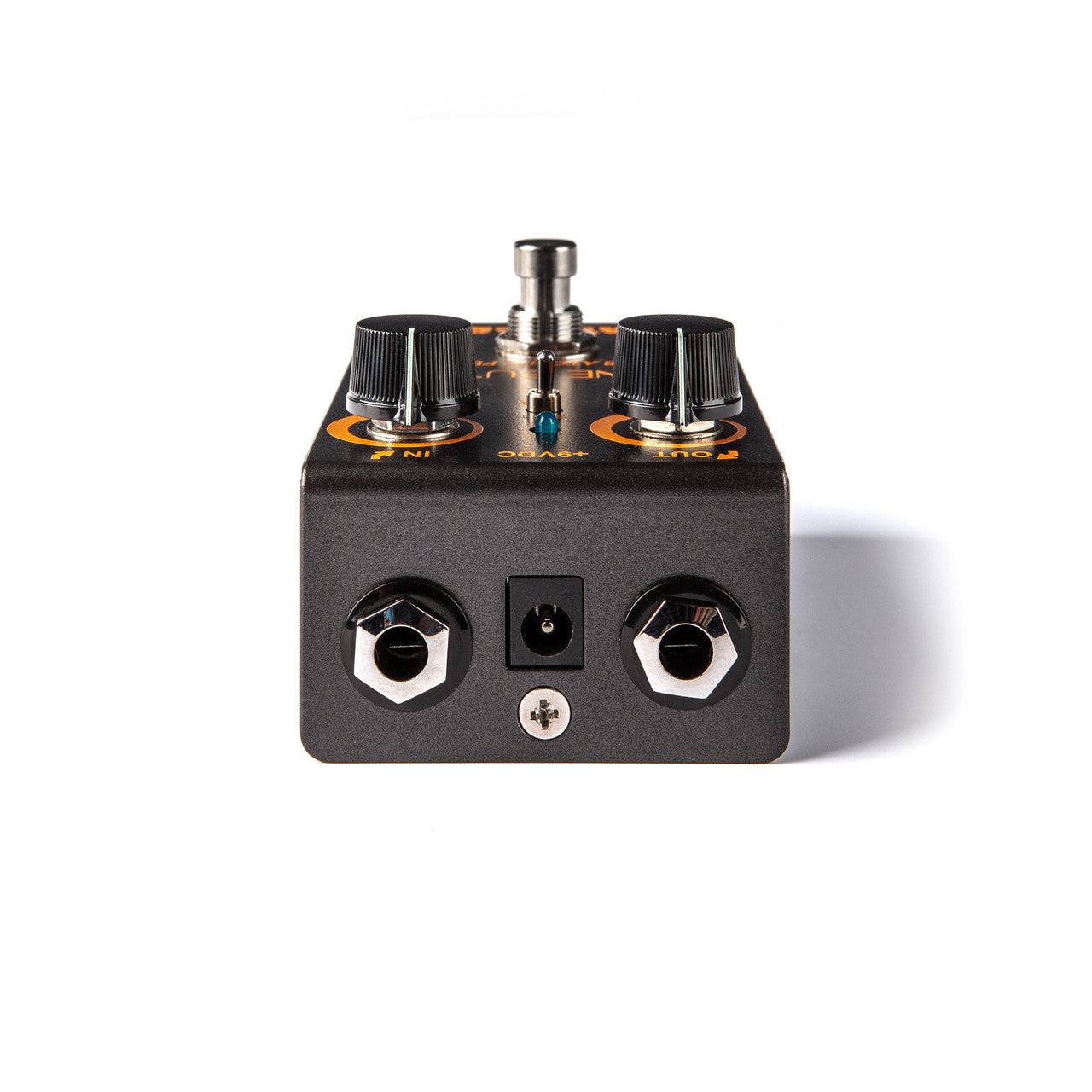 The Way Huge Smalls Stone Burner Sub Atomic Fuzz will put you in touch with your freaky side. It’ll have you threatening the world with searing fuzz in one moment and generating earth-shaking low end in the next. It’ll unleash sonic blasts that roar at the heavens like pillars of terra-cotta glow that hide the stars... The fuzz and sub octave signals each have their own level knobs so that you can mix the two to your own twisted taste. The Sub 1/Sub 2 switch lets you choose just how low your dirty deeds can go. Volume and Tone controls round out this pedal’s insidious interface.